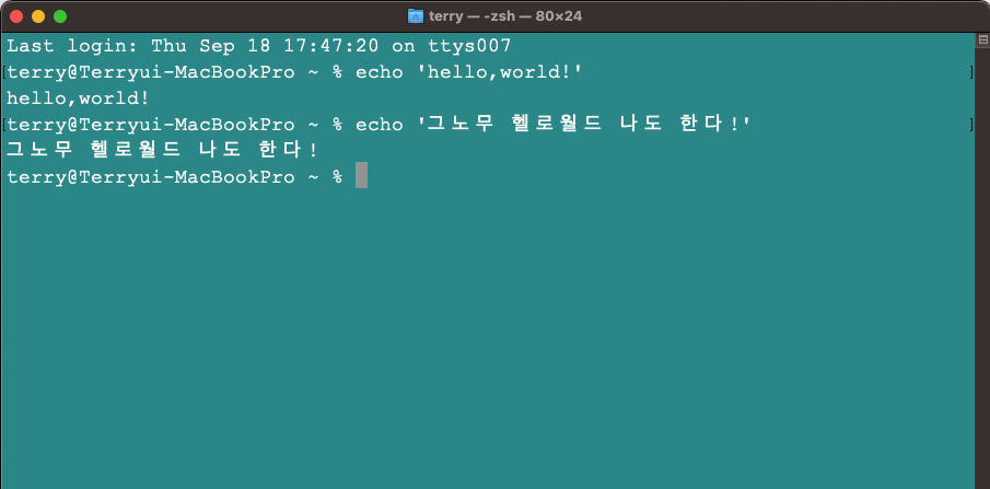 터미널(Terminal)→ Spotlight에서 검색(command + space후 terminal 입력).